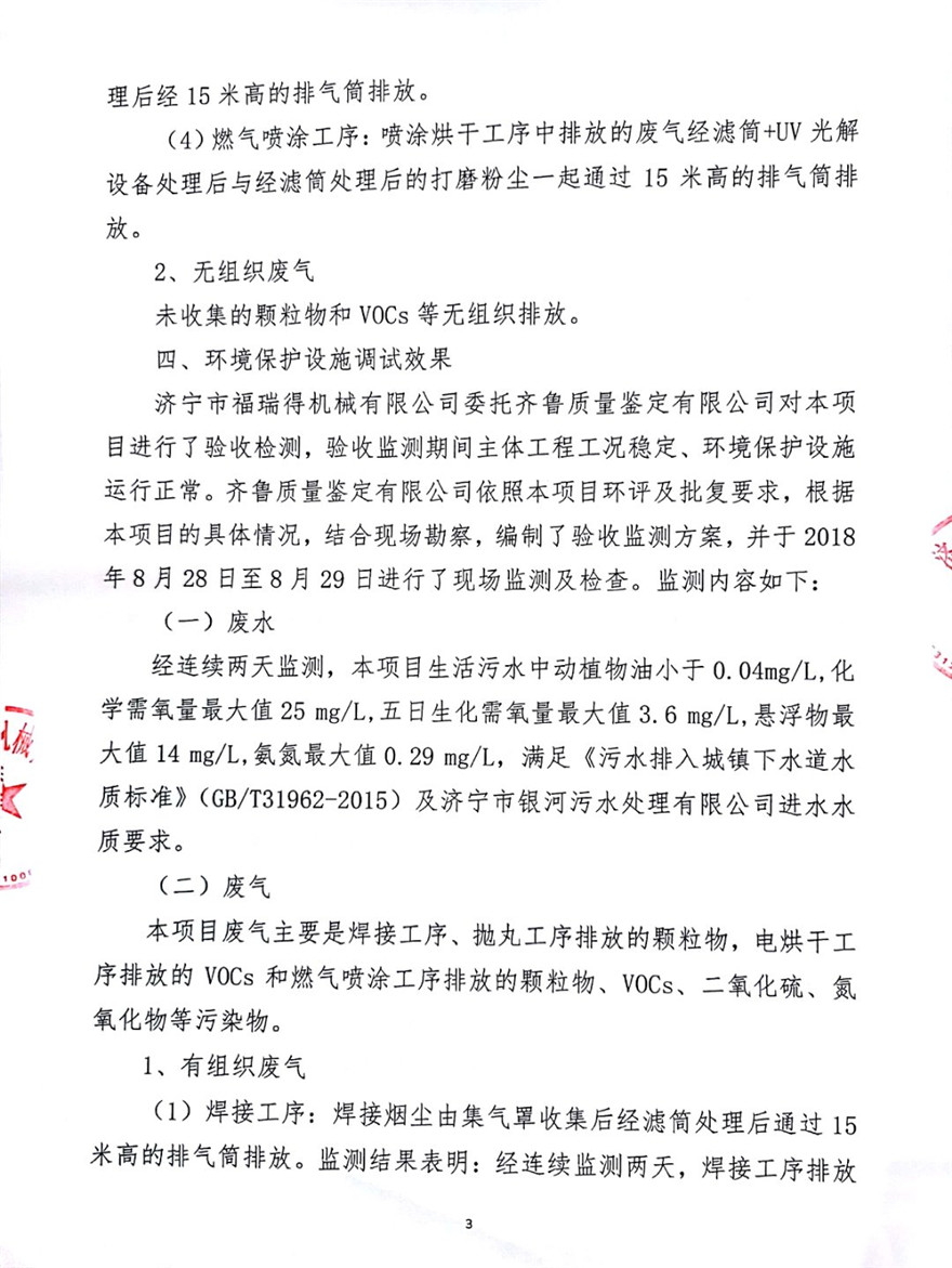 濟(jì)寧市福瑞得機(jī)械有限公司年產(chǎn)2600臺(tái)小型機(jī)械及12000噸機(jī)械配件加工項(xiàng)目(廢氣、廢水)竣工環(huán)境保護(hù)驗(yàn)收意見(jiàn)
