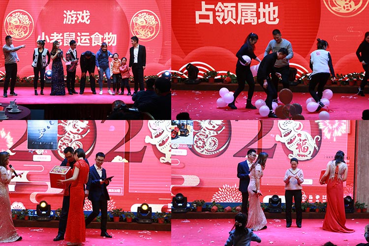 四、游戲、抽取獎品環(huán)節(jié)展示。年會當然少不了游戲、抽取大獎環(huán)節(jié)了,精心安排的互動游戲,大大地調動了員工們的熱情,臺下一片歡聲笑語,昔日的汗水都化為杯中的美酒,大家舉杯共飲。抽取大獎是激動人心的,看著拿大獎的同事心中充滿了羨慕。