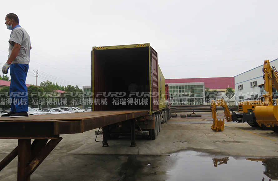 9月3日,福瑞得機(jī)械6臺手扶雙輪壓路機(jī)、和2臺9米移動(dòng)燈車裝車出口非洲。
