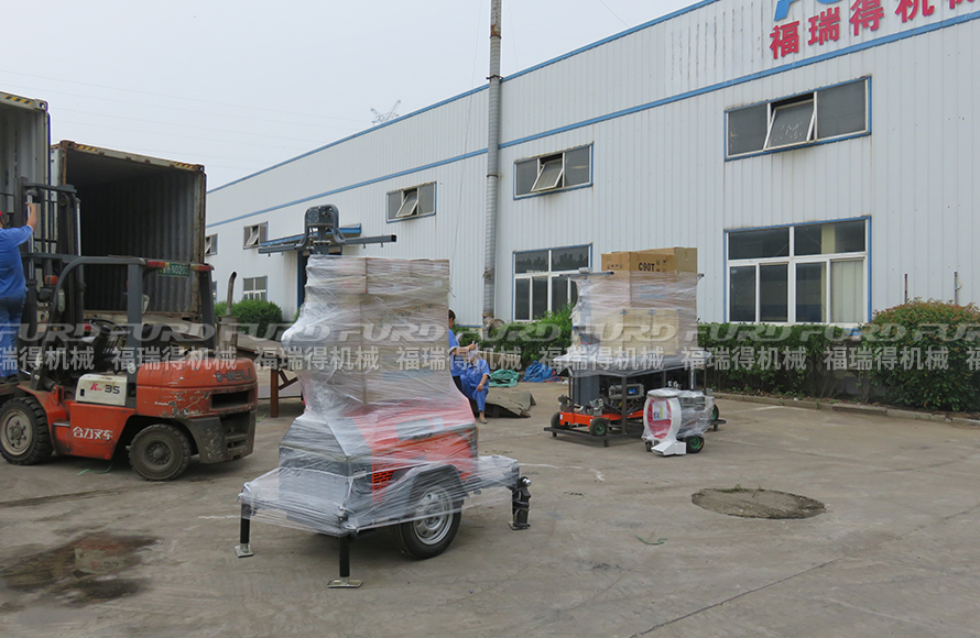 7月9日,福瑞得機(jī)械一批移動(dòng)燈車,路面吹風(fēng)機(jī),壓路機(jī)及路面灌縫機(jī)等機(jī)械設(shè)備出口墨西哥。