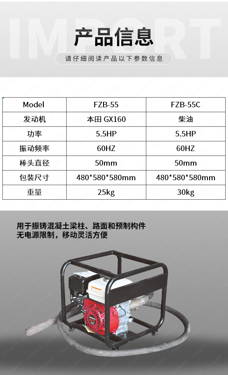 用于振鑄混凝土梁柱、路面和預(yù)制構(gòu)件。 無(wú)電源限制,移動(dòng)靈活方便。